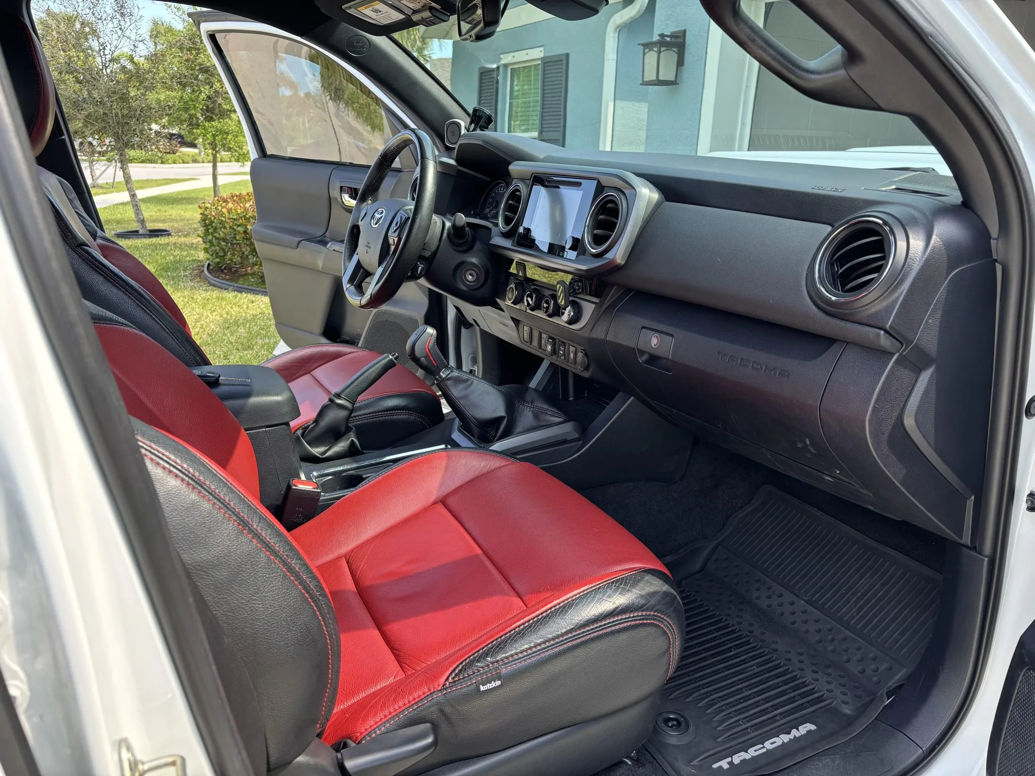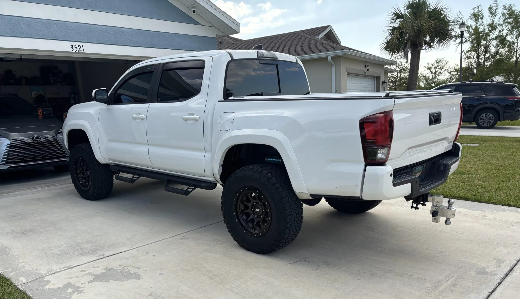 The Toyota Tacoma TRD Sport 4x4 Double Cab is a modified midsize pickup finished in Super White with black and red interior accents. Powered by a 3.5L V6 paired with a 6-speed manual and 4WD, it features a 3? lift kit, aftermarket wheels, limited-slip differential, and upgraded JL Audio sound system. Equipped with practical add-ons like a tonneau cover, bedliner, and side steps, this Florida-owned truck shows 84k miles and minor past damage on record.